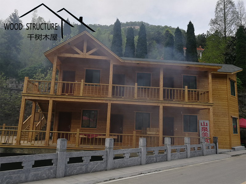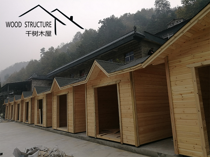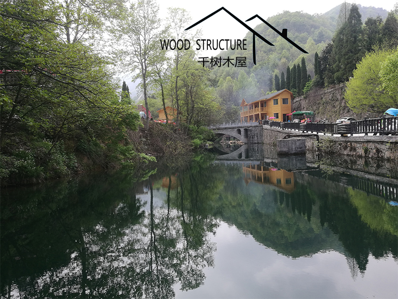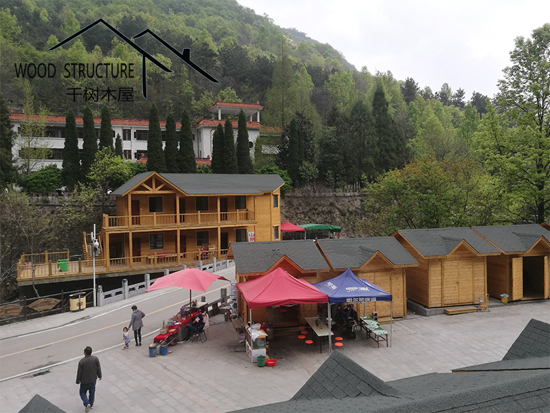 風(fēng)景名勝區(qū)的復(fù)式辦公樓木屋和20個(gè)售賣小木屋由河南千樹木業(yè)有限公司(以下簡(jiǎn)稱千樹木屋)設(shè)計(jì)并建造。