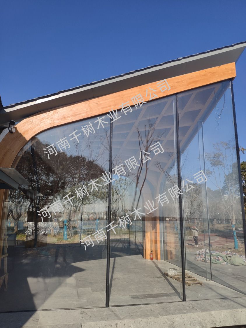 項(xiàng)目參數(shù):花旗松雙曲面膠合木框架,建筑面積260平米