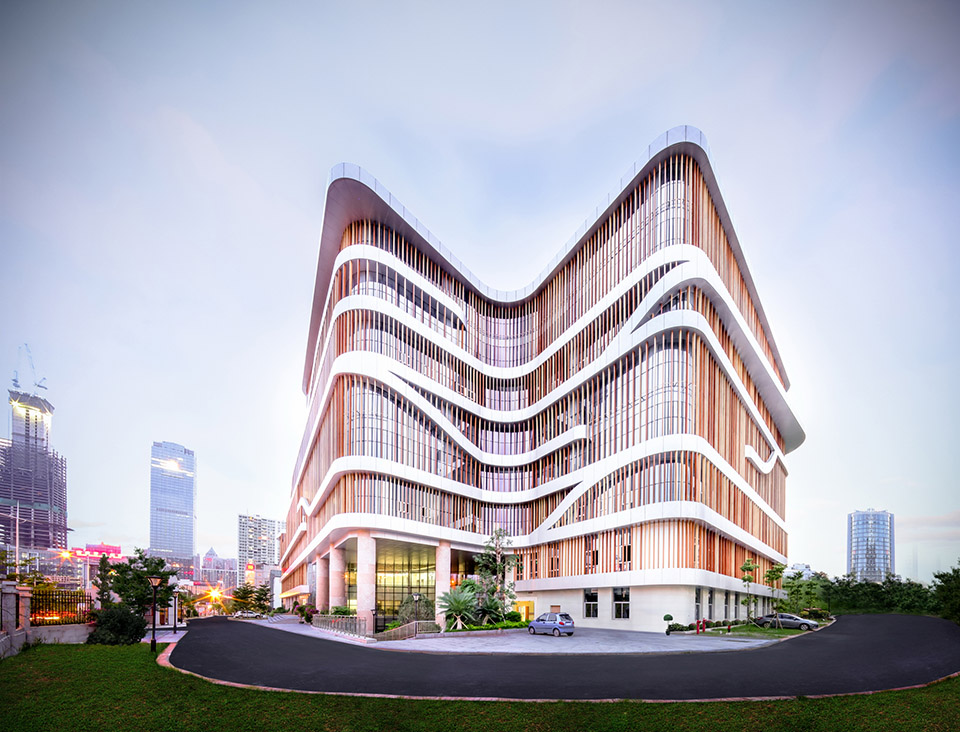 時境建筑的廣西老干部活動中心項目結(jié)合地貌的變化,嘗試將本地傳統(tǒng)的竹木結(jié)構(gòu)建筑原型通過當(dāng)代技術(shù)轉(zhuǎn)譯為現(xiàn)代空間,變化的遮陽板肌理暗合了本土手工印象,創(chuàng)造了豐富的室內(nèi)與室外的空間體驗。