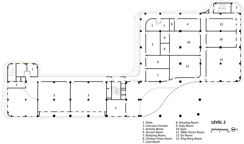 建筑的理念根源于對項目背后的人文內(nèi)涵的思考:建筑師希望要創(chuàng)造一個適于退休人員的空間,而這些退休者的青年時期大多是在文革中度過的。盡管歷史對文革的評價是負(fù)面的,但文革時期形成的“集體式生活”多少還是為那個時代留下了些溫暖的記憶。退休者對于命運多舛的時代的歸屬感是建筑師對于現(xiàn)代生活的孤立與冷漠做出批評的立足點。