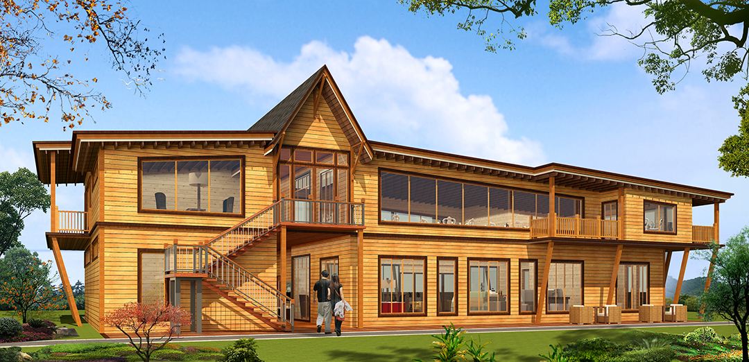 木材是唯一可再生的主要建筑材料,在能耗、溫室氣體、空氣和水污染以及生態(tài)資源開采方面,木結(jié)構(gòu)的環(huán)保性遠(yuǎn)優(yōu)于磚混結(jié)構(gòu)和鋼結(jié)構(gòu),是公認(rèn)的綠色建筑。與鋼筋、水泥、磚石、塑料、金屬等構(gòu)筑的房屋相比,原木建筑給人一種返樸歸真感。它環(huán)保、清新、美觀、自然、健康、沒有化學(xué)物質(zhì)和放射性材料對人體的危害。原木本身散發(fā)著天然的香氣,有利于人的身心健康。