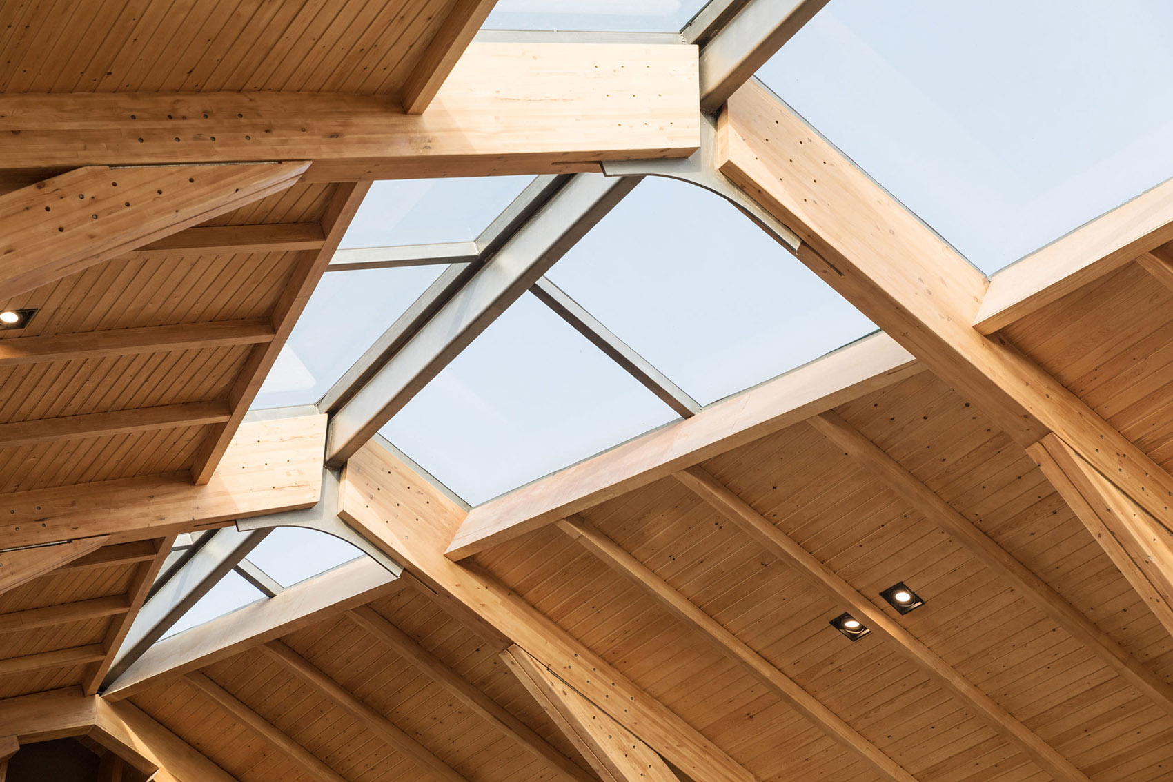 膠合木作為常用的木結(jié)構(gòu)建筑用材,可制作成大跨度彎曲梁,廣泛用于體育館、大型公共會所的制造。大型公共建筑為何如此偏愛膠合木?