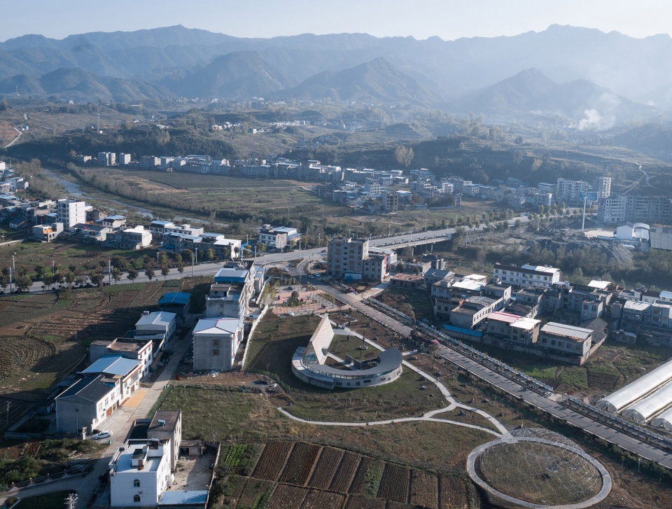 在竹溪縣龍壩鎮(zhèn),一條新的市政道路“長龍大道”以30度的切角與原有鄉(xiāng)鎮(zhèn)的的主入口交叉而過,在與原有鄉(xiāng)鎮(zhèn)的主干道之間的三角形地塊,便是草莓園活動(dòng)館和采摘園的用地。龍壩鎮(zhèn)政府希望以草莓的培育,采摘以及相關(guān)體驗(yàn)活動(dòng),作為龍壩鎮(zhèn)田園經(jīng)濟(jì)的新起點(diǎn),在新老道路的交叉口,形成鄉(xiāng)村活力的切入點(diǎn)。