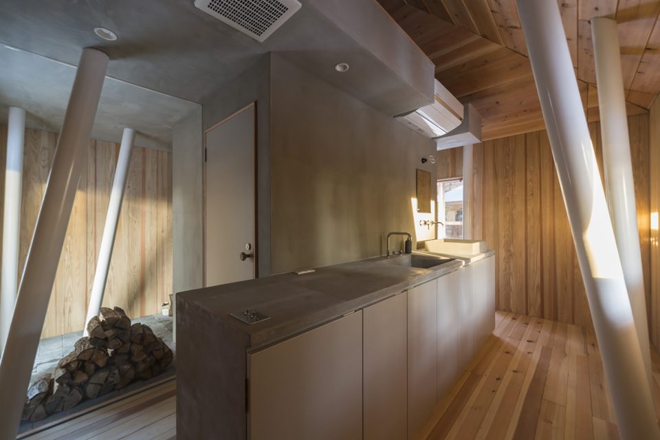 房屋的建造使用了120棵年齡為80-90歲、直徑約40厘米的大樹,沒有經(jīng)過任何特殊處理,也沒有刻意將木材切割至標(biāo)準(zhǔn)尺寸,這使得木材完全地保持了其原本的狀態(tài)。與遵照認(rèn)為規(guī)定的現(xiàn)代社會(huì)不同,“一年住宅”完全順應(yīng)了自然。通常情況下,人們不會(huì)完整地用光一整棵樹,但本項(xiàng)目卻以靈活的建造方式實(shí)現(xiàn)了這一點(diǎn)。
