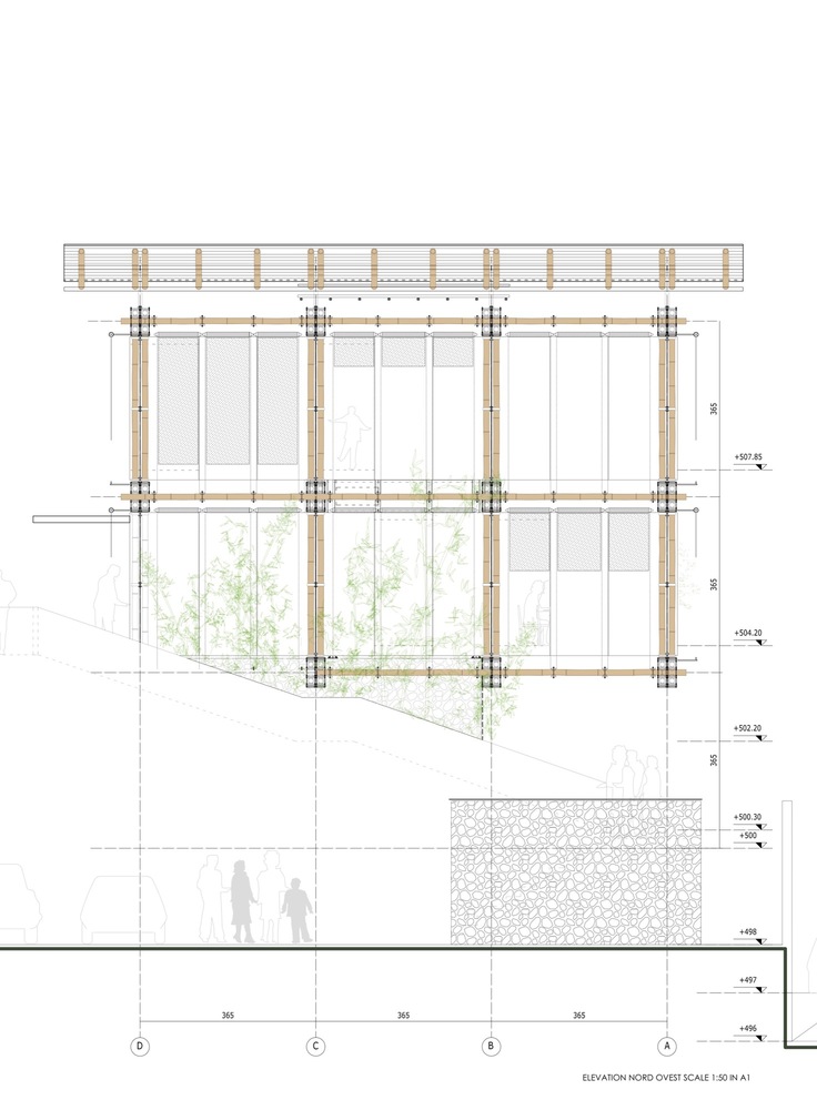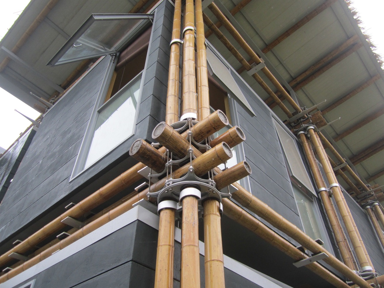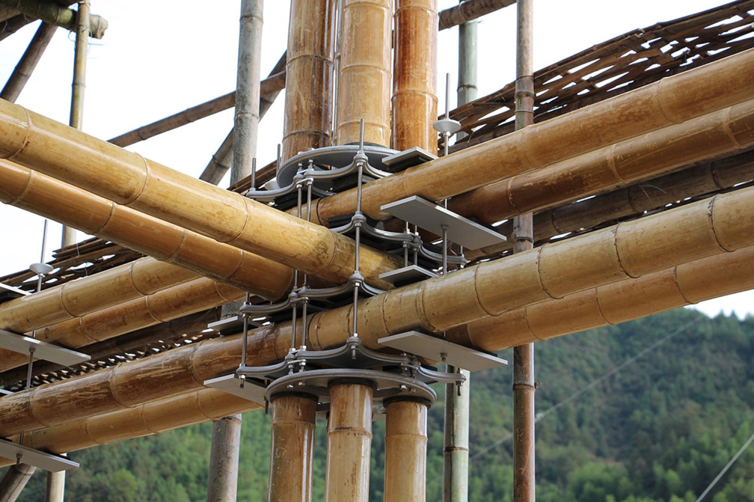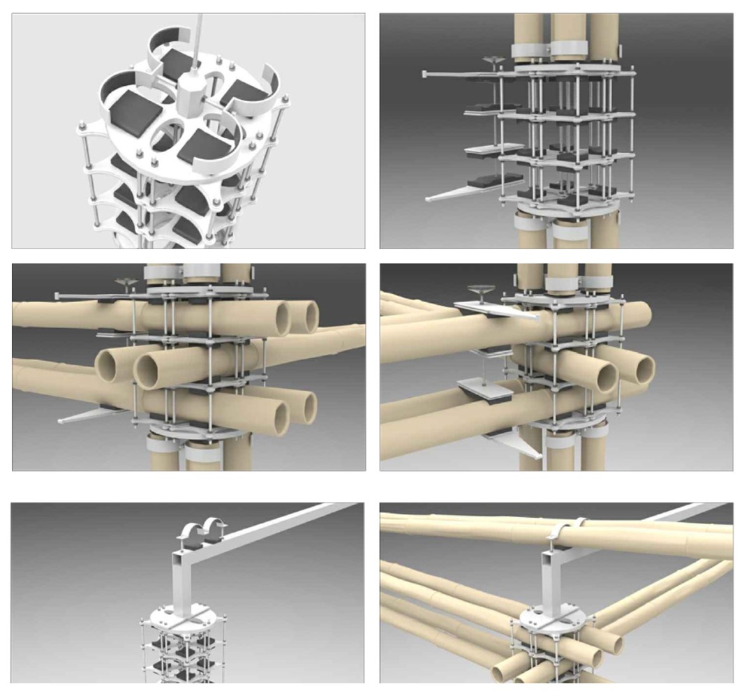 設(shè)計(jì)干式連接,不要通過(guò)穿孔削弱竹子,也不要用混凝土填充竹子,還可以根據(jù)需要更換竹桿;