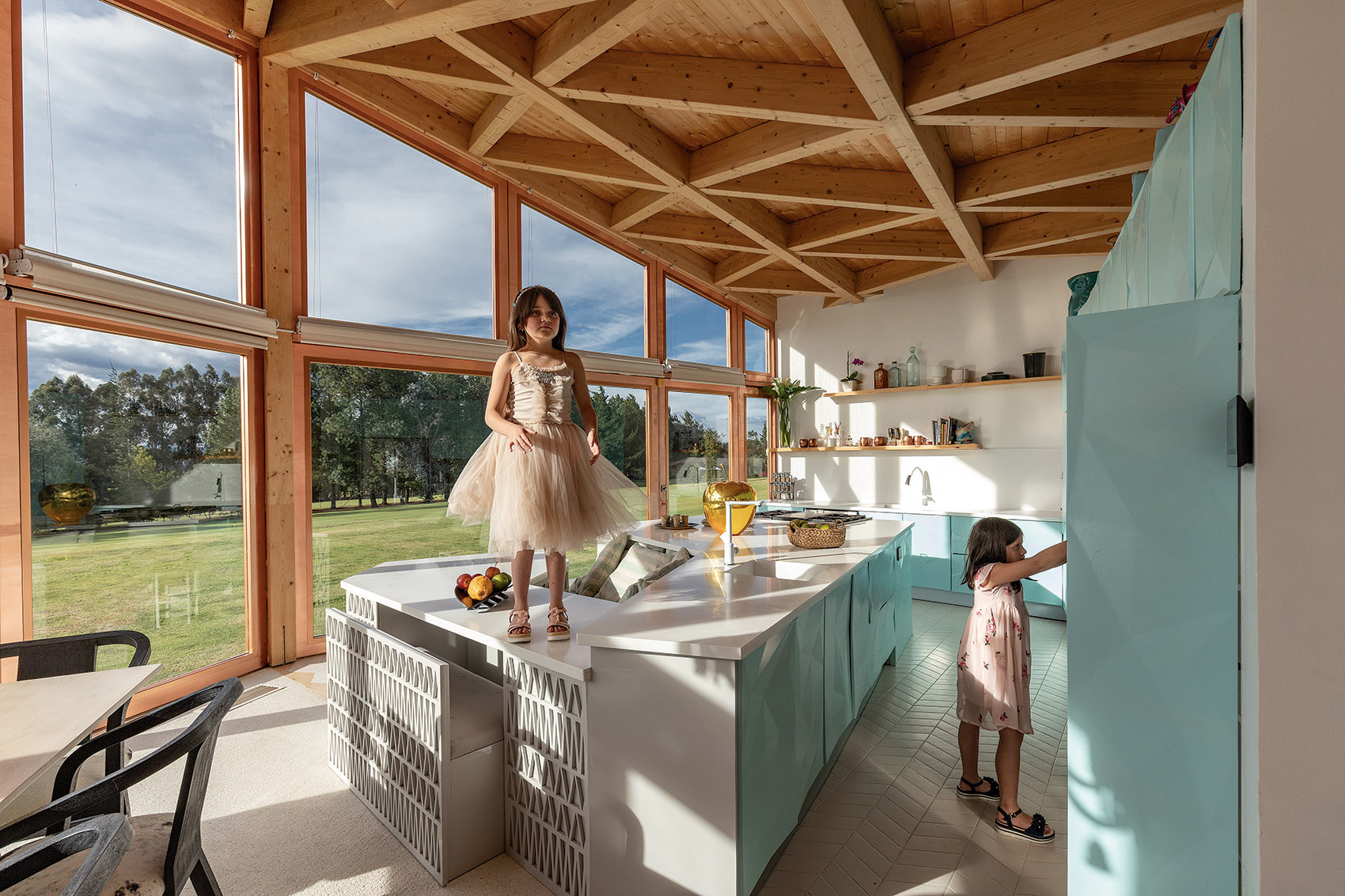 落成后的住宅呈現(xiàn)出石材與玻璃的微妙平衡,充滿(mǎn)活力與溫暖的木結(jié)構(gòu)外觀則將建筑與環(huán)境融為一體。室內(nèi)設(shè)計(jì)遵循了最初的概念,以精致的材料與現(xiàn)代化的設(shè)計(jì),平衡并激活了建筑空間。從利用先進(jìn)的制造工藝處理木材,再到結(jié)合本地和國(guó)際建造經(jīng)驗(yàn),本項(xiàng)目向大眾展示出本地工業(yè)的巨大潛力。這是厄瓜多爾首次實(shí)現(xiàn)該類(lèi)型的建筑,并達(dá)到如此細(xì)致的水平。將數(shù)字技術(shù)與當(dāng)?shù)氐氖止趧?dòng)技術(shù)相結(jié)合,不僅創(chuàng)造出獨(dú)特的建筑形式,同時(shí)也有助于提升該國(guó)建造業(yè)的潛力與可能性。